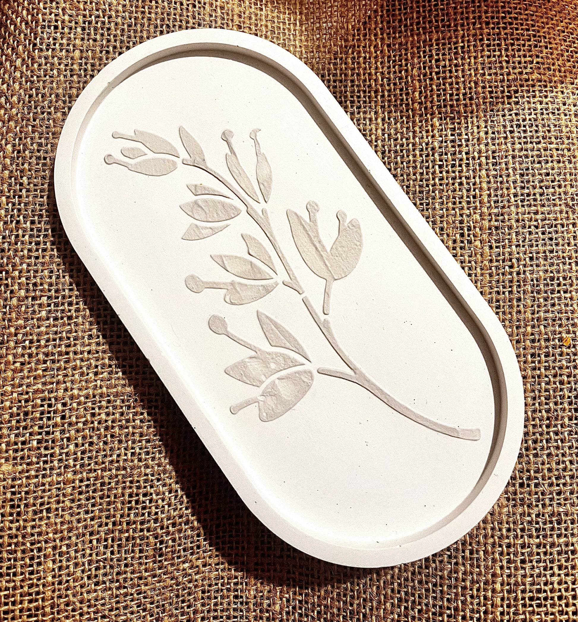 Bandeja posavelas de cemento y con decoración en relieve. Elaboradas en Pi Negre.