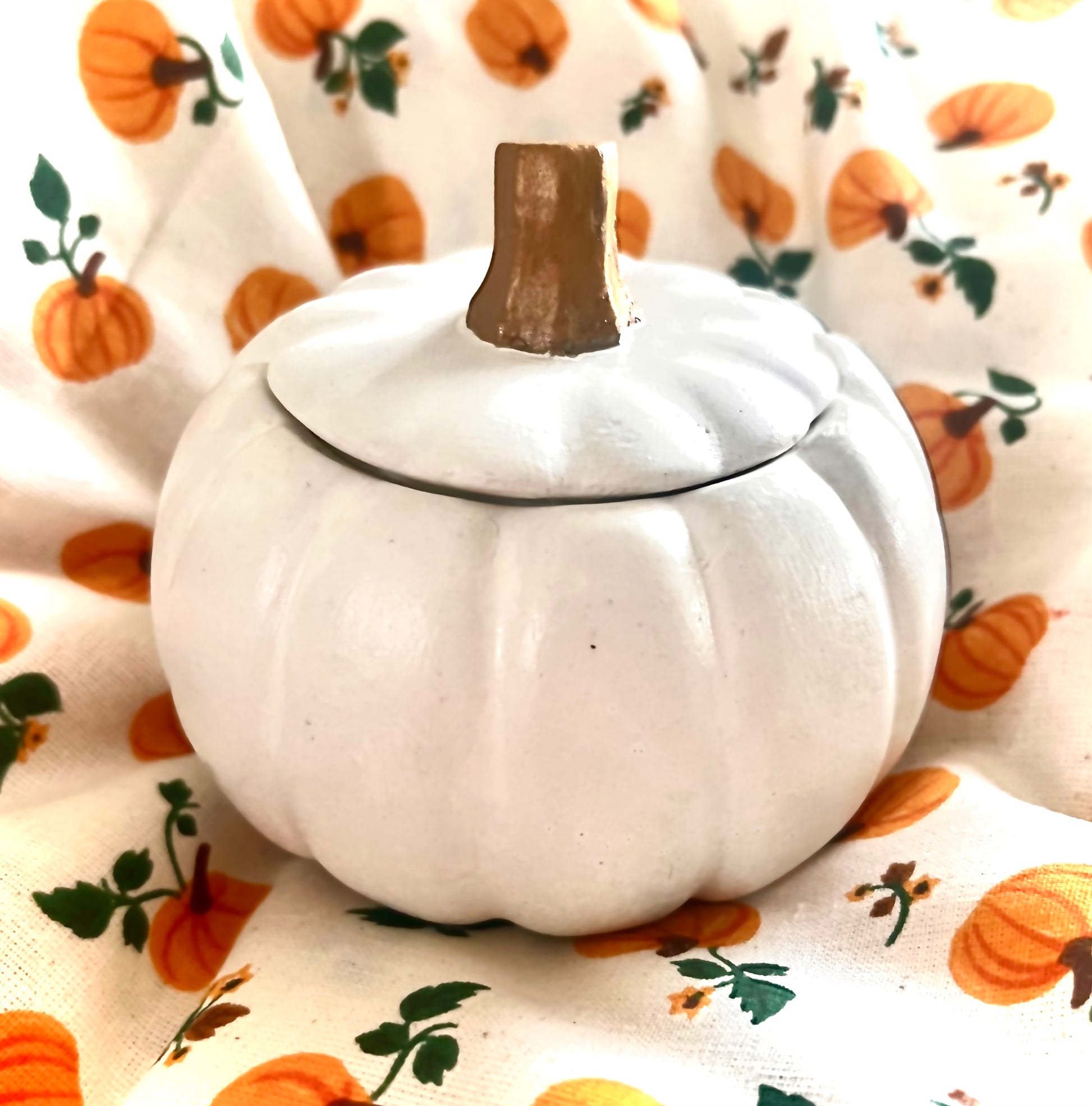 Preciosa calabaza decorativa de cemento que en su interior contiene una vela de aroma a elegir entre TARDOR (Manzana y Canela) o NIT D’ÀNIMES (Calabaza, Azúcar y Especias). También puedes elegir el color de la tapa.